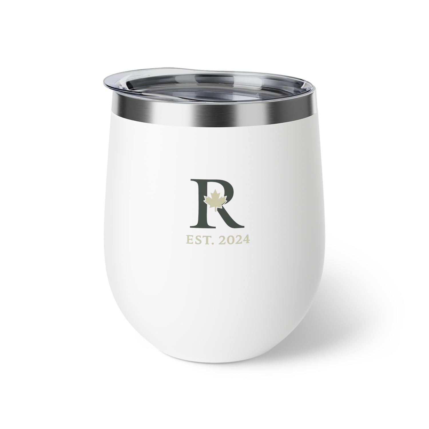 Monogrammed 12oz Insulated Wine Tumbler — 'R' with Maple Leaf, EST. 2024